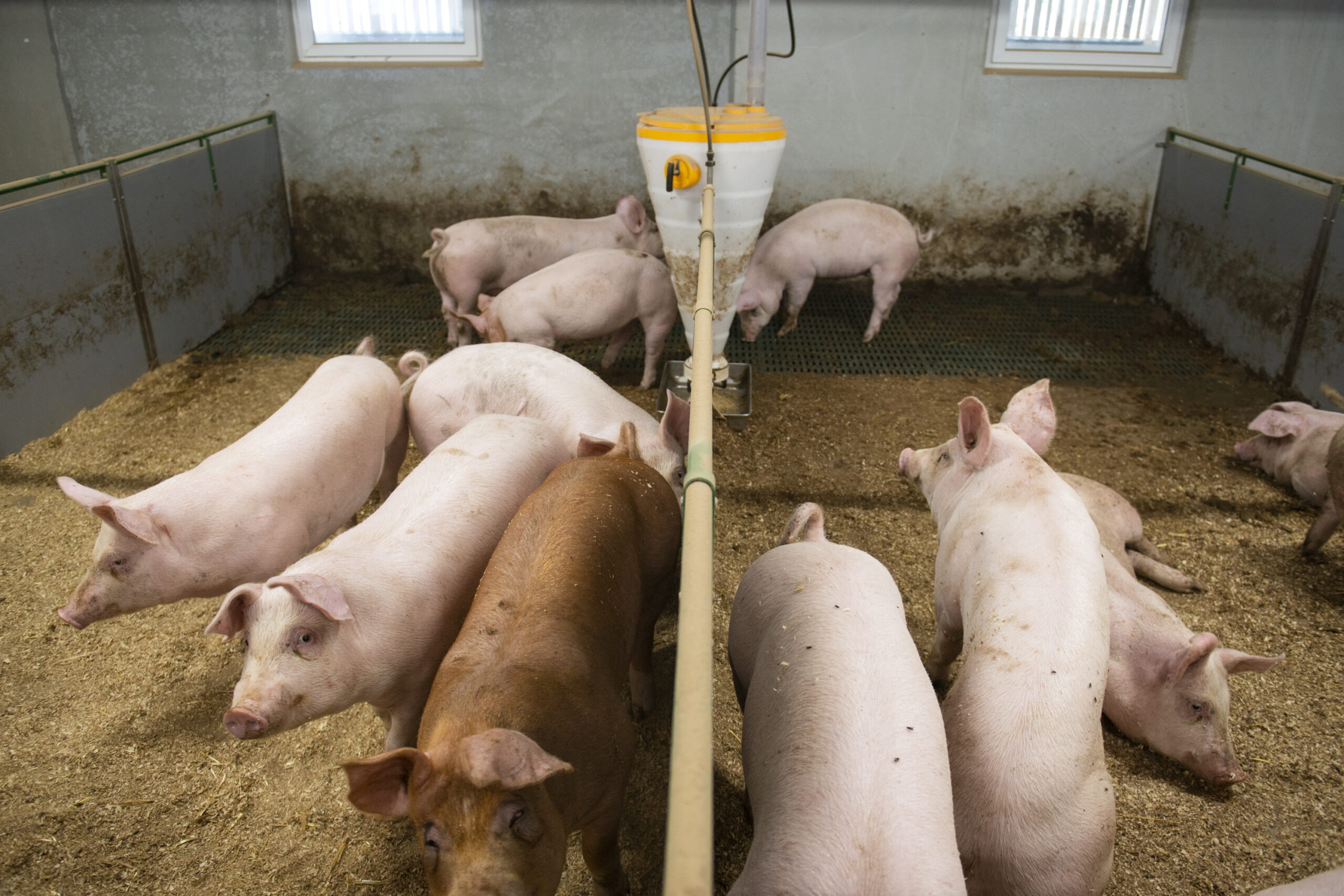 - Fødebinger: Tette skiller med en høyde på 100 cm gir trygghet for purker og smågris.